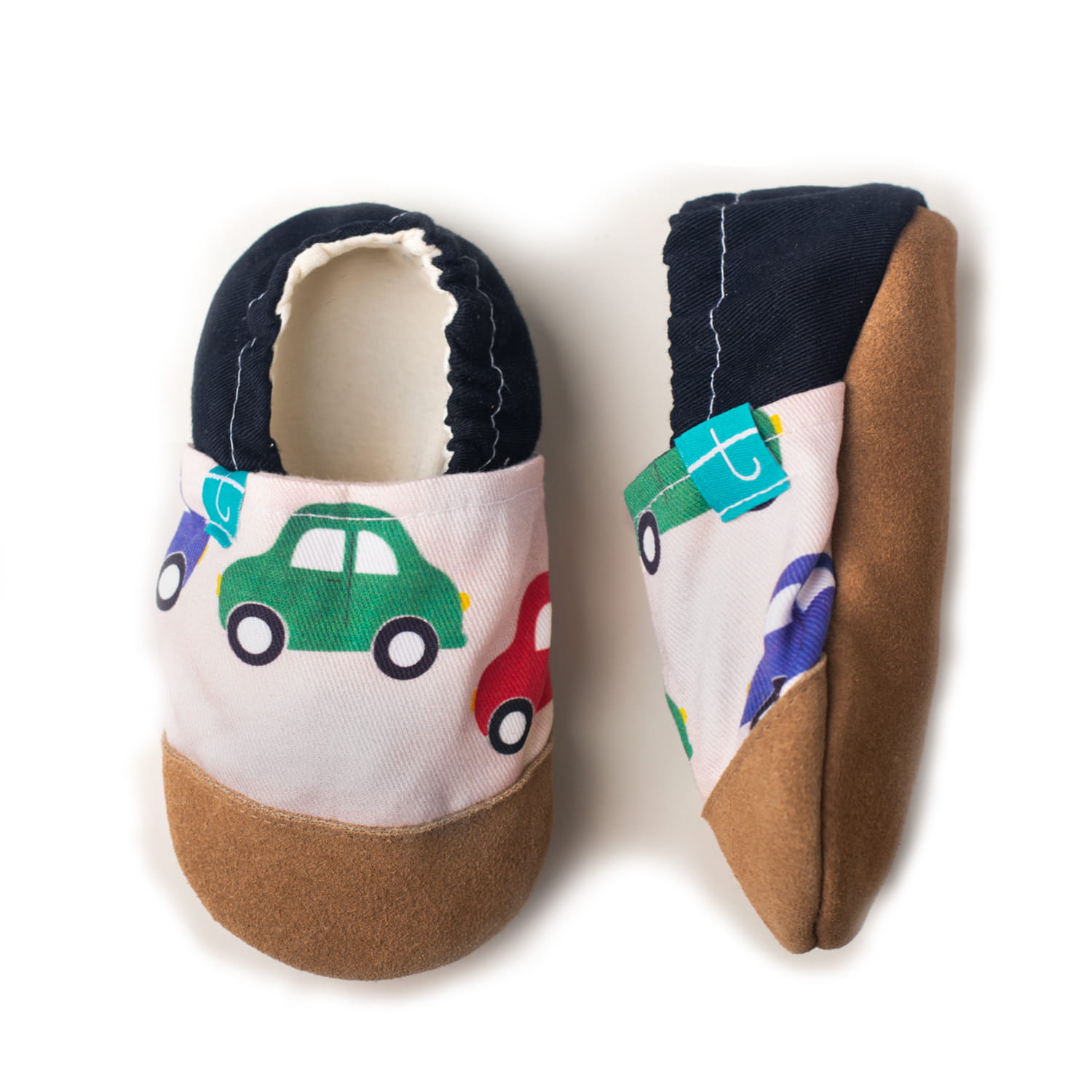 Urocze kapcie typu soft sole, idealne na pierwsze kroczki jak i dla większych maluchów. Szyte ręcznie z najwyższej jakości materiałów, są bardzo miękkie i lekkie dzięki czemu dziecko czuje się w nich jak na boso, dzięki bambusowej tkanine znajdującej się we wnętrzu kapciuszka oraz zastosowaniu w produkcji naturalnych materiałów stópka nie poci się. Ponadto w podeszwie użyto bawełnaniengo wypełniania, który powoduje, że stopa jest lepiej odizolowana od podłoża a same kapcie są wygodniejsze.