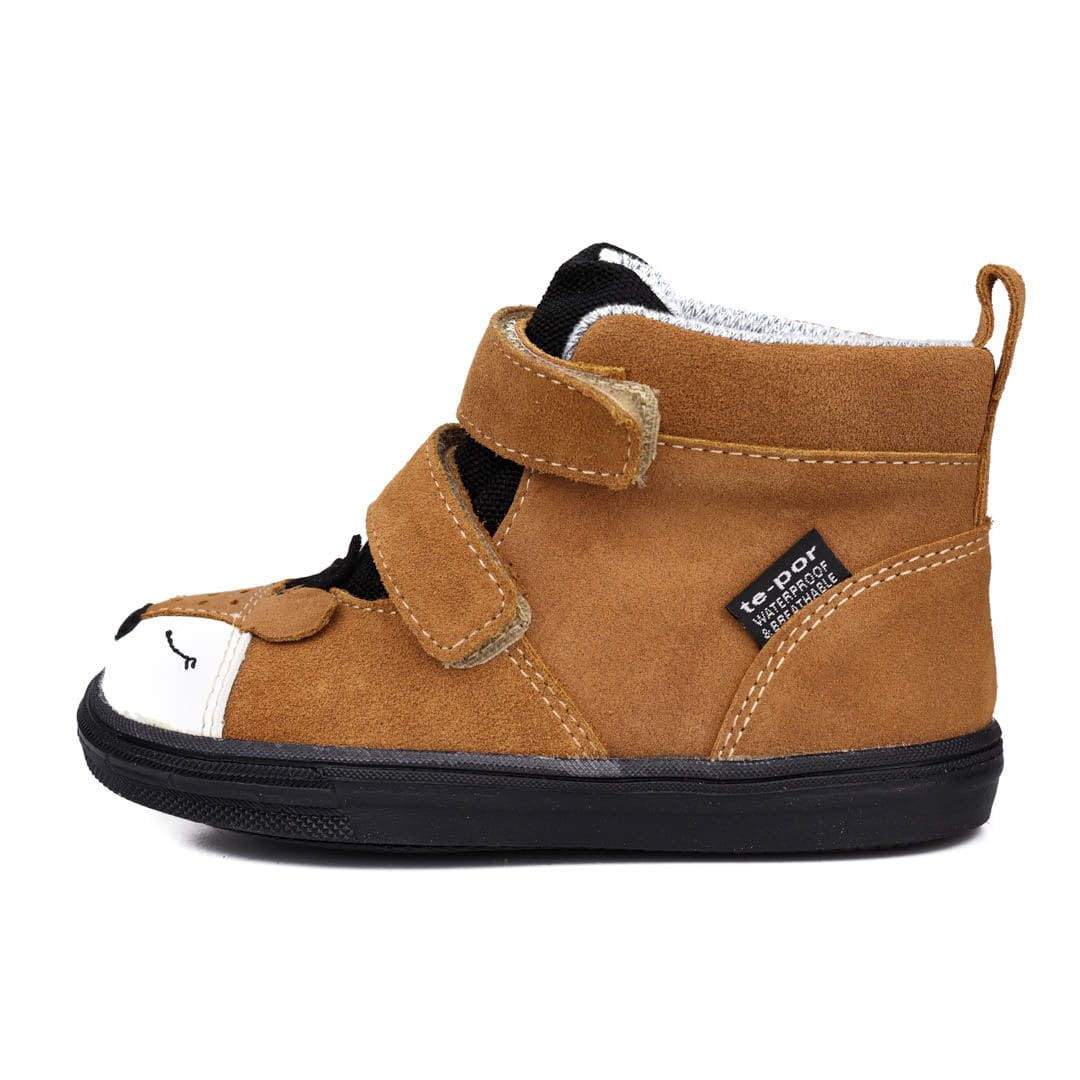 Trzewiki wodoodporne z membraną te-por. Wykonane z wysokojakościowej skóry naturalnej-welurowej. Trzewiki zapinane są na rzepy. Komfortowa i ocieplana wkładka z warstwą termoizolacyjną. Dzięki usztywnianej pięcie i elastycznej podeszwie, wspierają prawidłowy rozwój stopy. Odpowiednie na temperaturę powyżej 0ºC.