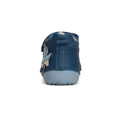 Półbuty dziecięce D.D.step w kolorze granatowym, to idealne buciki dla dzieci, które dopiero zaczynają stawiać swoje pierwsze kroczki. Odpowiedni model dla normalnych i wąskich stóp. Ten bucik wykonaliśmy w całości ze skóry naturalnej, posiadają także skórzaną, wyjmowaną wkładkę. Wyposażyliśmy je w wygodną i szybą regulację na rzepy co ułatwia ich zakładanie. Zastosowanie rzepów pozwala także precyzyjnie dopasować szerokość buta do stopy dziecka.