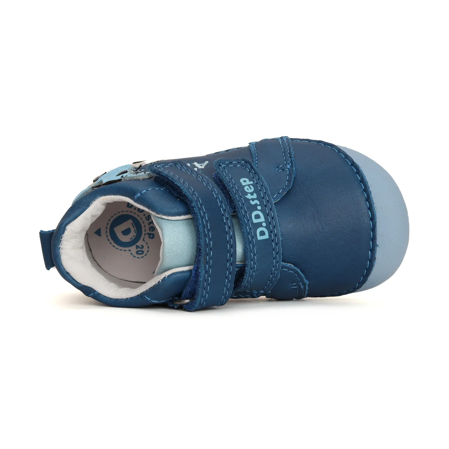 Buty D.D.step opracowaliśmy do nauki chodzenia – posiadają niezwykle elastyczną i miękką podeszwę. Zastosowaliśmy w nich podeszwę, która jest dodatkowym zabezpieczeniem dla małych palców. Stworzyliśmy je tak aby umożliwiały dziecku wsparcie przy stawianiu pierwszych kroków. Zapiętek jest delikatnie usztywniony przy jednocześnie dużej ilości miejsca na palce. Użyty przez nas zapiętek wpływa na to, że stopa układa się naturalnie i może prawidłowo wzrastać.