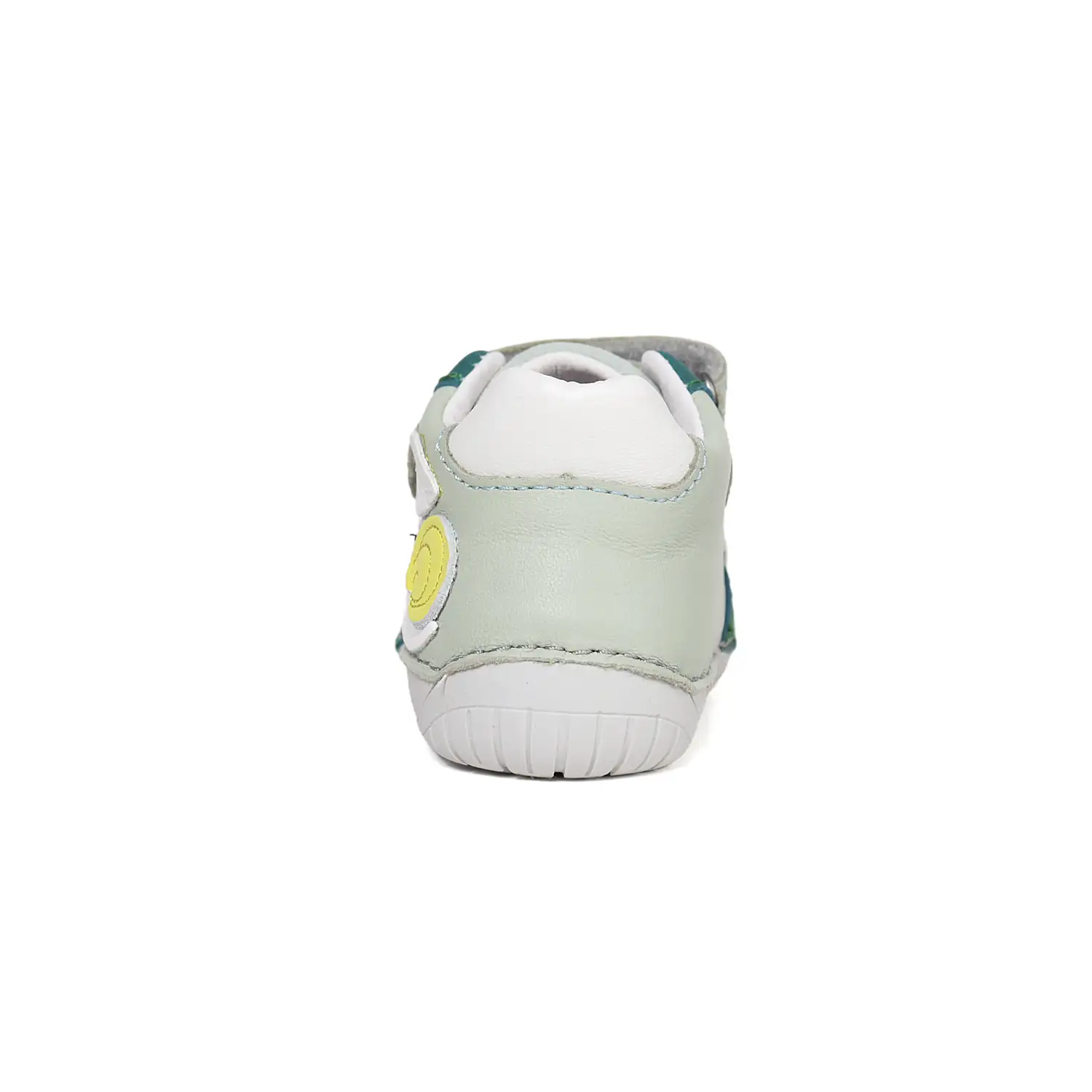 Półbuty skórzane barefoot w kolorze khaki z aplikacją w kształcie ślimaka to idealne buty do nauki chodzenia dla normalnych i szerokich stóp, które potrzebują komfortu, swobody ruchu i odpowiedniego wsparcia podczas codziennych aktywności. Buty posiadają aplikację, która zmienia kolor po wyjściu na światło słoneczne. Buty zostały wykonane w całości z wysokiej jakości skóry naturalnej – zarówno cholewka, jak i podszewka oraz wyjmowana, skórzana wkładka zapewniają miękkość, oddychalność i naturalny kontakt ze stopą. Zapięcie na rzepy ułatwia szybkie zakładanie oraz pozwala precyzyjnie dopasować obuwie do szerokości stopy dziecka.