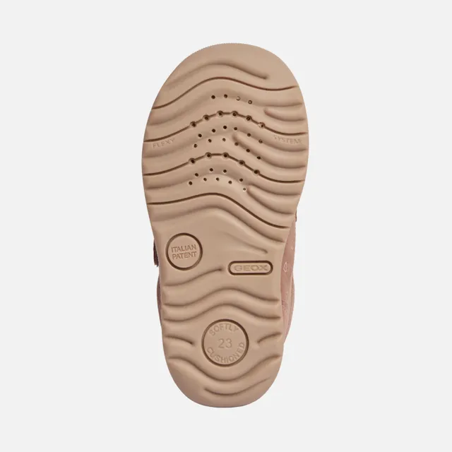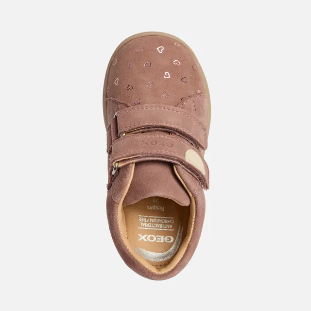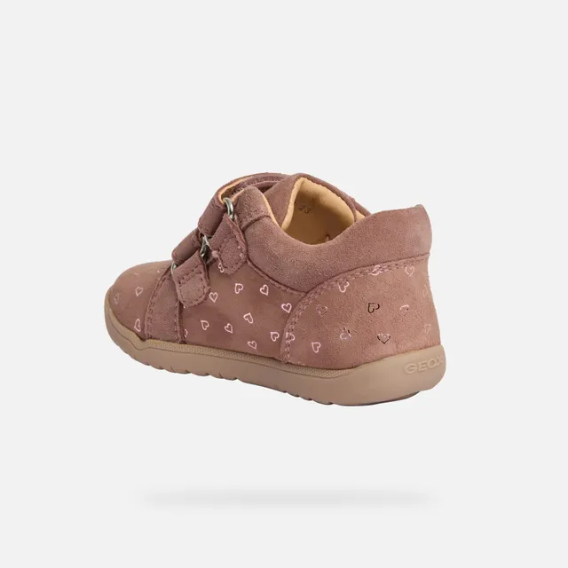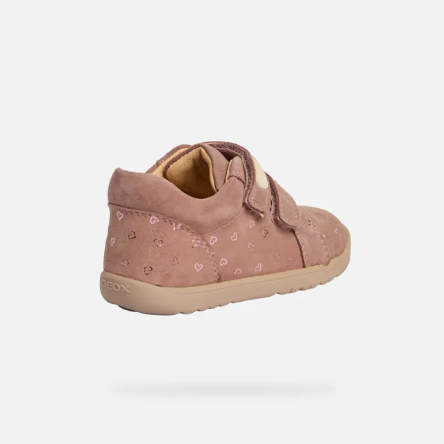Różowe dziewczęce obuwie Geox Macchia Girl z praktycznymi rzepami do pierwszych kroków.
