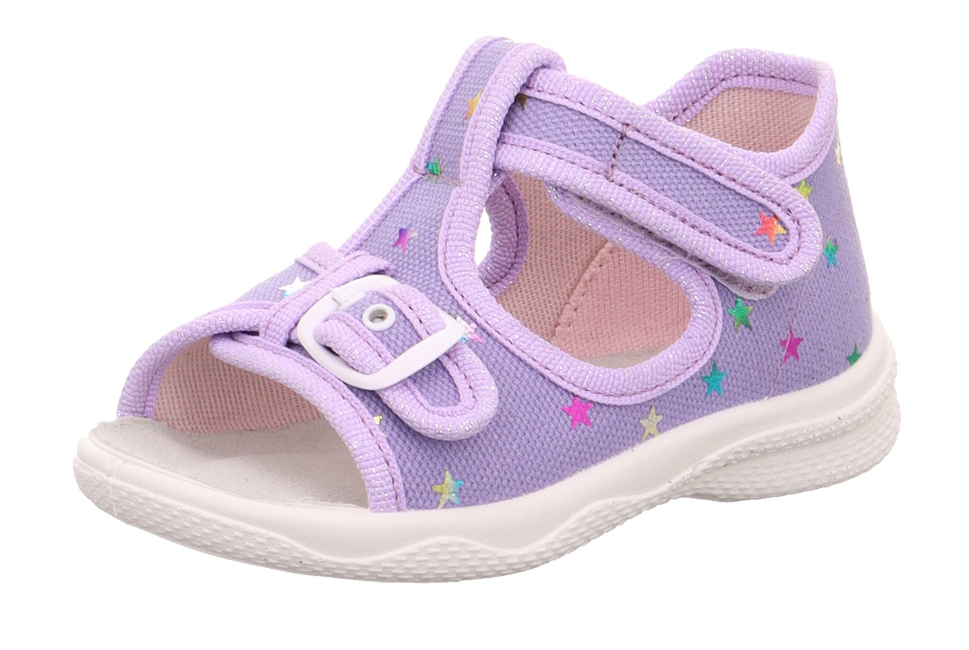 Superfit POLLY idealne do stawiania pierwszych kroków. Wykonane są z wytrzymałego materiału tekstylnego, który gwarantuje elastyczność i miękkość. Dzięki regulowanemu paskowi z przodu można je optymalnie dopasować do stopy. Elastyczna podeszwa wspiera naturalny ruch stopy.