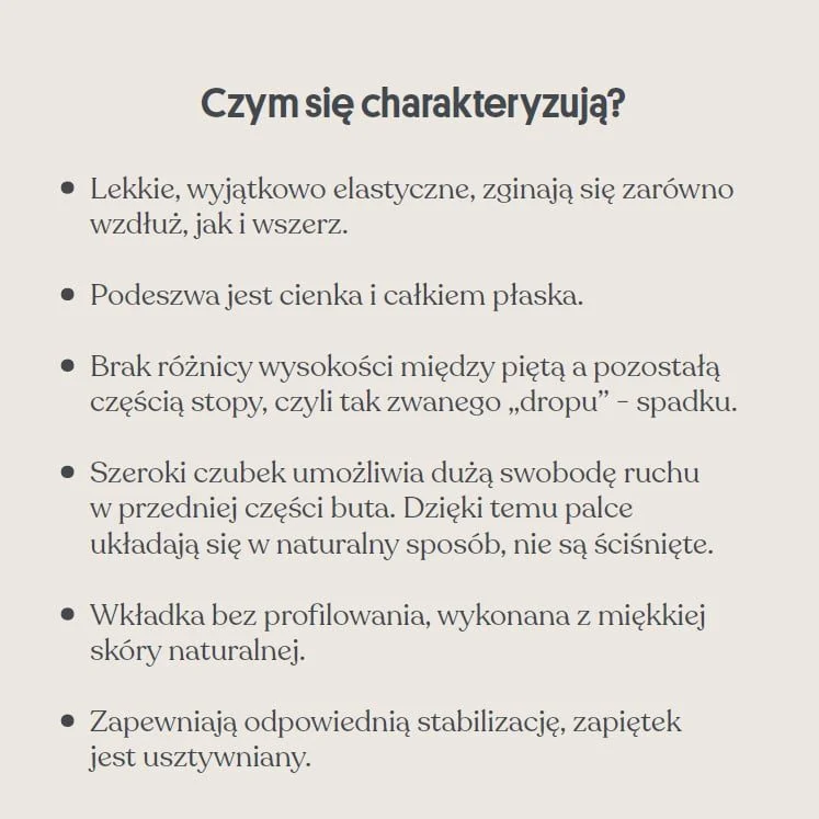 Tenisówki dziecięce z kolekcji BAREFOOT. Buty tworzą wrażenie chodzenia boso. Ultramiękka i elastyczna podeszwa Usztywniony zapiętek stabilizuje stopę. a zapięcie na rzep pozwala na dopasowanie obuwia do jej tęgości. Zaokrąglony nosek oraz szeroka podeszwa gwarantują stabilność i wygodę użytkowania. Podeszwa “zero drop”- płaska, brak różnicy w wysokości pięty do pozostałej częsci spodu. Komfortowa, płaska wkładka wykonana jest z naturalnej skóry.
