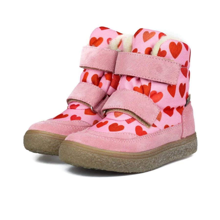 Wodoodporne trzewiki zimowe z membraną. Wykonane z wysokojakościowego materiału tekstylnego oraz skóry naturalnej welurowej. Wnętrze obuwia to 100% wełna oraz wodoodporna membrana. Trzewiki zapinane są na rzepy. Komfortowa i ocieplana wkładka z warstwą termoizolacyjną. Dzięki usztywnianej pięcie i elastycznej podeszwie, wspierają prawidłowy rozwój stopy.