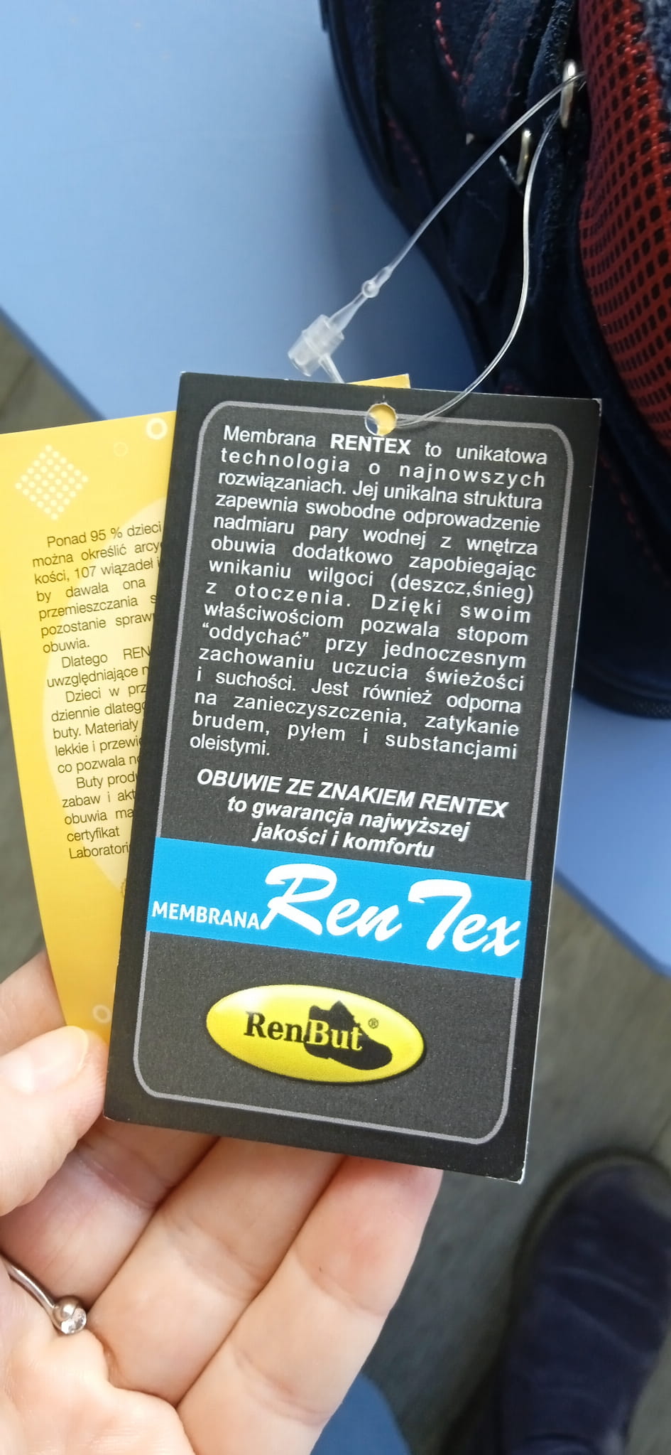 Trzewiki z membraną Ren-tex wyprodukowane są ze skóry naturalnej. Membrana RENTEX to unikatowa technologia o najnowszych rozwiązaniu ,jej unikalna struktura zapewnia swobodne odprowadzanie nadmiaru pary wodnej z wnętrza obuwia dodatkowo zapobiega wnikaniu wilgoci z otoczenia. Dzięki swoim właściwościom pozwala stopom “oddychać” przy jednoczesnym zachowaniu uczucia świeżości i suchości. Jest również odporna na zanieczyszczenia, zatykaniem brudem, pyłem i substancjami oleistymi. Wkładka z folią termoizolacyjną otoczoną od góry i dołu ocieploną włókniną. Dzięki temu znakomicie podtrzymuje ciepło wytwarzane przez stopę Twojego dziecka i jednocześnie zatrzymuje zimno idące od spodu buta.